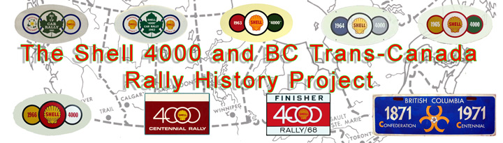 This is the second major update since I put this site up in 1997. Not much has happened on the rally front, but I have managed to get copies of all the material I need to meet my major goal: complete documentation of the British Columbia Trans-Canada and Shell 4000 Rallies. Recently there has been a resurgence of interest in these events. Part of that interest is from car enthusiasts, particularly those interested in the Team Triumph TR4's from 1964. Quite a bit of interest is also coming from family members of the original competitors seeking information about the accomplishments of their, sadly now deceased, relatives.